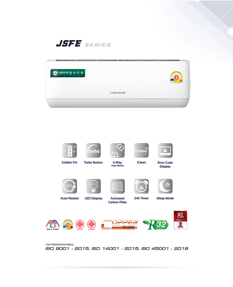 - ระบบน้ำยา R32 ซึ่งมีประสิทธิภาพในการทำความเย็นได้ดี เป็นมิตรกับสิ่งแวดล้อม